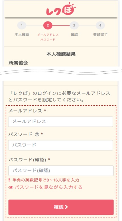 メール記載のURLにアクセスして、レクぽ会員登録を行ってください。